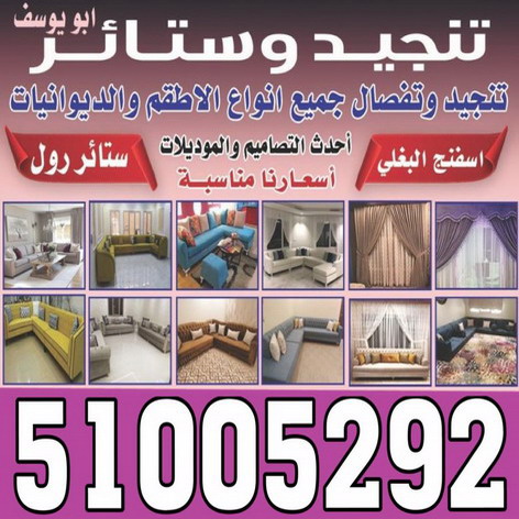 تنجيد وتفصيل جميع الاطقم والديوانيات وتفصال وتركيب جميع انواع الستائر